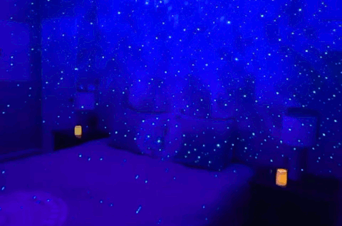 Projects a starry sky onto ceilings or walls