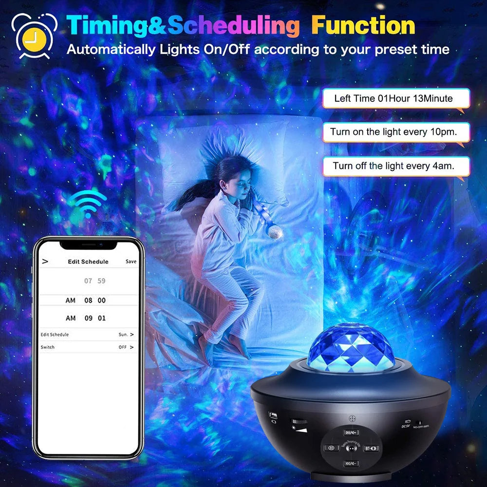 Transform any room into a mesmerizing celestial oasis with its advanced features and stunning projections. Whether you're looking to create a relaxing atmosphere for bedtime, set the mood for a romantic evening, or simply add a touch of magic to your space, this projector has you covered.